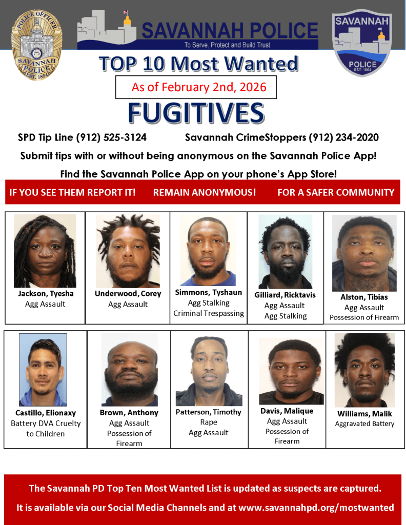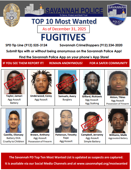 Savannah Police Department Top 10 Most Wanted entry.